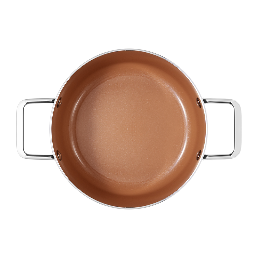 Thân nồi làm bằng hợp kim nhôm chắc chắn, phủ chống dính Ceramic cao cấp, an toàn tuyệt đối cho sức khỏe. Lớp phủ siêu bền, chống mài mòn hiệu quả, giữ món ăn trọn vị và không thôi nhiễm chất độc hại.