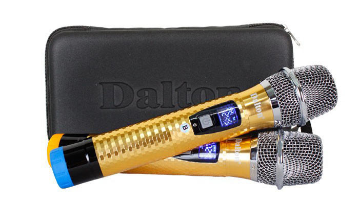 Loa kẹo kéo Dalton sử dụng micro UHF chuyên nghiệp. Với thiết kế thân kim loại sơn tĩnh điện mày vàng lấp lánh vô cùng sang trọng và đẹp mắt. Micro sử dụng tần số UHF giúp cho việc thu hút song tốt nhất. Đặc biệt, micro Dalton có khả năng chỉnh được tần số, giúp cho bạn thoải mái ca hát mà không sợ trùng tần số với các loa khác ở gần.
