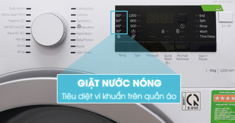 Máy giặt Beko giúp người dùng có thể điều chỉnh nhiệt độ nước trong quá trình giặt từ 30-90 độ C tùy theo chương trình. Giặt nước nóng giúp bạn giặt sạch quần áo hơn tiêu diệt các loại vi khuẩn gây hại cho quần áo.