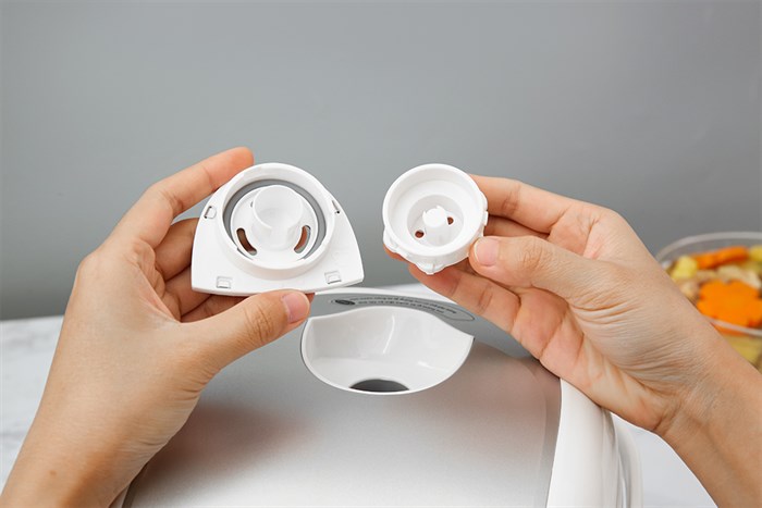 - Không bịt lỗ thoát hơi vì lỗ này kiểm soát hơi nước, chống nhão, nếu bịt, cơm sẽ không chín như ý.