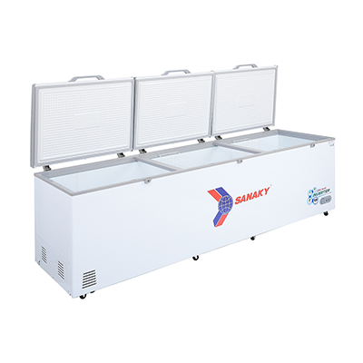 Tủ đông Sanaky sở hữu dung tích lên tới 1143.5 lít, đây là dung tích cực lớn so với các loại tủ đông thông thường, sản phẩm sẽ là sự lựa chọn hoàn hảo cho những siêu thị hay gia đình buôn bán lớn. Với thiết kế 3 nắp dỡ giúp người dùng thuận tiện hơn trong việc đóng/mở cửa tủ đông khi cần thiết.