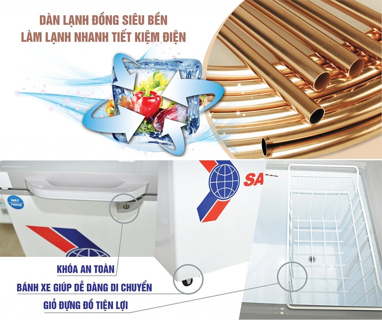 - Tủ đông sử dụng gas làm lạnh là gas R600A - loại gas mới nhất, làm lạnh tốt và thân thiện với môi trường.