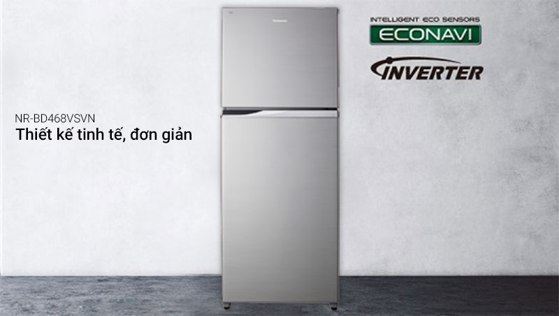 Tủ lạnh Panasonic 405 lít NR-BD468VSVN có thiết kế khá đơn giản nhưng không kém phần tinh tế với đường kẻ ngang mạ Crom và thay nắm chìm, chiếc tủ lạnh sẽ giúp căn nhà của bạn thêm phần sinh động.