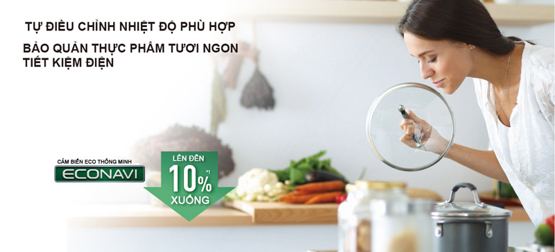 Công nghệ thông minh Econavi với hệ thống cảm biến mở cửa, nhiệt độ hiện đại, giúp tủ điều chỉnh để giữ độ lạnh phù hợp mà vẫn tiết kiệm điện năng trong quá trình sử dụng.