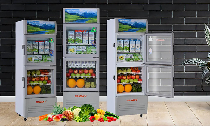 Tủ mát Sanaky VH-308W3L là chiếc tủ mát 2 cánh mở trên dưới mới ra mắt đầu năm 2020 của hãng Sanaky. Giúp giảm hơi lanh thất thoát ra ngoài khi mở tủ hơn là các dòng tủ mát chỉ có 1 cánh liền. Sản phẩm sở hữu công nghệ inverter tiết kiệm điện và công nghệ LOW-E hiện đại giúp giữ nhiệt tốt hơn và chống bám hơi nước. Dung tích của tủ là 300 lít cùng thiết kế nhỏ gọn không chiếm nhiều diện tích. Sản phẩm rất thích hợp với những cửa hàng thực phẩm, quán ăn, siêu thị, nhà hàng…